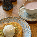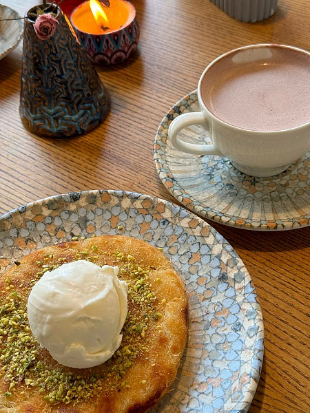 Дополняют кофейную карту десерты из натуральных продуктов. Особого внимания заслуживают кюнефе – традиционное восточное лакомство и нашумевший дубайский шоколад, который также изготавливают прямо здесь.