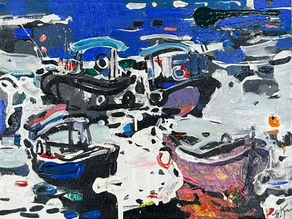 «Соло для ударных» (холст, акрил, 70х50, 2021 г.) – 60 000 рублей.