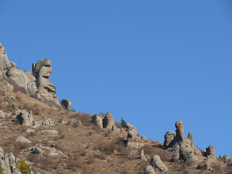 А на склоне Демерджи можно увидеть «Первобытную мадонну». Как и свойственно изобразительному искусству эпохи детства нашей планеты, скульптура весьма условна, но в камне легко угадывается образ: крепкая женская фигура и ребёнок, прижавшийся к матери, – рассказанная самой природой вечная история о материнстве как начале мира.