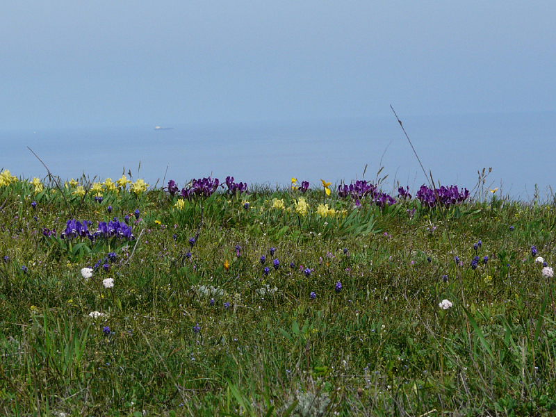 Весенний Опук радует гостей не только тюльпанами. В приятном соседстве с ними расцветают другие, не менее изящные представители флоры – дикие ирисы. Цветок получил имя в честь златокрылой Ириды – древнегреческой посланницы богов, сходившей на землю по радуге. Её многоцветье подарило название самому радужному цветку Тавриды. Маленькие, но сильные касатики (таково славянское имя ириса) дали жизнь огромному многообразию культурных сортов.