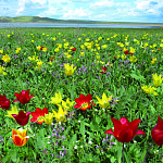 Самое яркое событие весны – цветение диких тюльпанов. Ближе к Пасхе – главному празднику торжества жизни – в траве загораются красные и жёлтые огоньки. Вскоре крохотные цветы покрывают склоны дорогим ковром: золотистые, алые, малиновые, пурпурные головки приветливо покачиваются под ветерком. Тюльпан душистый – прародитель хвалёных голландских тюльпанов – напоминает миниатюрный бокал для дорогого вина. Бутон тюльпана скифского похож на тугой свиток. Если гости будут внимательны, Опук подарит им встречу с тюльпаном коктебельским. Этот изысканный розовато-белый цветок – абориген Восточного Крыма.