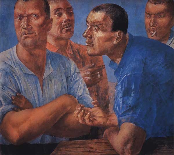 Но происхождение у Кузьмы Сергеевича действительно было не слишком артистичным. Сын сапожника и кухарки, он родился под Саратовом, в провинциальном Хвалынске, окончил четыре класса приходского училища, а свои первые уроки живописи брал у двух хвалынских монахов-иконописцев да у художника, рисовавшего в городке уличные вывески. Следующим его «университетом» стали самарские классы живописи и рисования. А в 1895 году 17-летний Петров-Водкин в Петербурге выдержал экзамен в Центральное училище технического рисования барона Штиглица «в числе первых учеников».