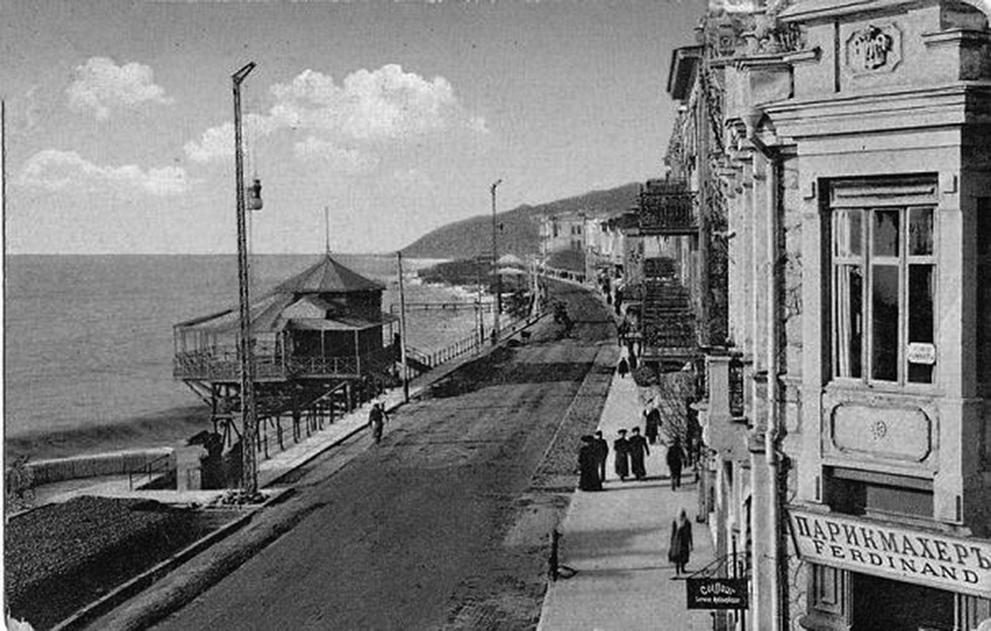 An indispensable attribute of any civilized beach were the bathhouses – light wooden pavilions, located in shallow water on piles. A thin bridge led to the bathhouses from the shore. Inside the pavilions were divided into cabins – in there one could change into a bathing suit and descend into the sea via ladder. At the beginning of the XX century, the Crimea was full with bathhouses.