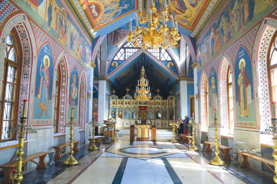 The Temple-Lighthouse of Saint Nicholas, who is the patron saint of seafarers and travelers, is among the top five of the most unusual churches of Russia. The snow-white temple was built in the amazing place — at the cape. It’s as though the temple overshadows the Black Sea. The height of the building is 65 meters. Four facades are decorated with mosaic paintings of Saint Nicholas, icon of Our Lady of Mount Athos, Portent and Protection of Blessed Virgin Mary. The icons made in rare macramé technique arouse admiration too.