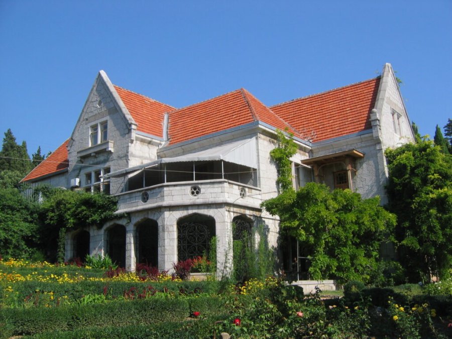 Неудивительно, что простой и ёмкий образ обрёл достойное материальное воплощение в Крыму. В 1909 году великий князь Георгий Романов построил в своём имении «Харакс» – на склоне, открытом морю, – небольшую элегантную виллу. Глаз не устаёт любоваться сложными изгибами полигональной кладки стен, где многоугольные камни подогнаны друг к другу без малейшего зазора, и останавливается на странном элементе декора – трёх кругах в центре окружности. Этот знак свидетельствует о беззаветном служении отечественной культуре владельца гаспринского имения: Георгий Михайлович 22 года безвозмездно возглавлял санкт-петербургский Русский музей, принимал непосредственное участие в создании коллекции живописи и скульптуры.