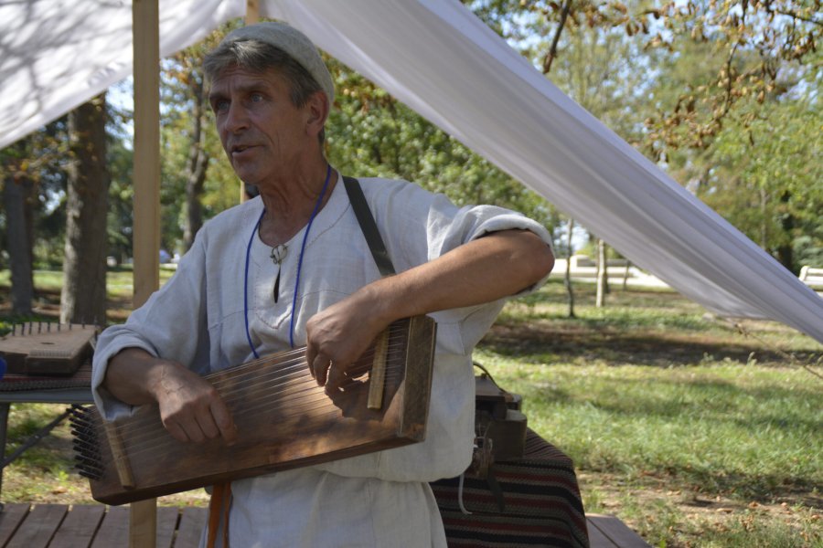— Василий Васильевич Андреев еще не создал тот, всем известный, вариант. Треугольная форма появилась только в 1880 году. А до этого балалайки были именно такие – длинный гриф, маленький резонаторный корпус и две струны. При этом мелодию играли только на одной, — объясняет Плотников и тут же наигрывает типичную для тех лет.