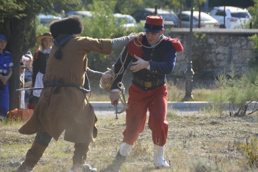 — Это больше собирательный образ боя, в который включены реальные случаи. К примеру, в этот раз решили вспомнить о героическом поступке Захара Осипова. Этот один из пластунов (пеший казак -ред.), проявивший себя в годы Крымской войны. Как-то он пленил француза. Французы начали стрелять по пленнику и нашему пластуну. Иностранец растерялся и вместо того, чтобы бежать к своим, побежал к русским позициям, с которых раздался громкий смех. Такой случай будет разыгран, — рассказал президент региональной общественной организации сохранения исторического наследия «Гренадёр» Илья Давыдов.