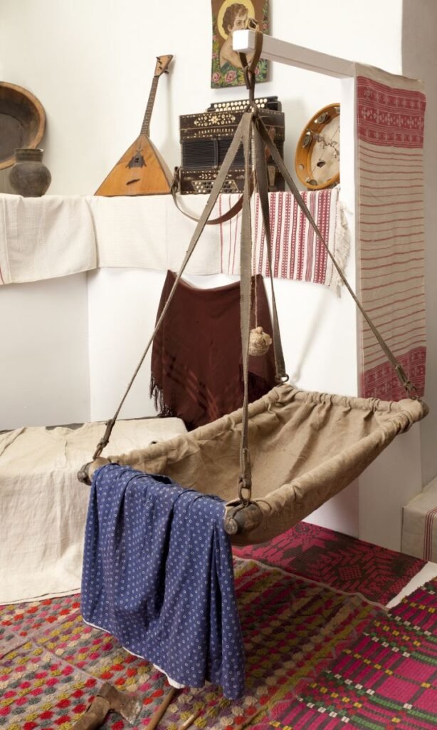 По-русски обитель новорождённого называлась зыбка. Изготавливал её по традиции кто-то из мужчин семьи. Чтобы дитятко хорошо росло, использовали быстрорастущие деревья. Крюк, на котором висела зыбка, крепился к поддерживающей крышу балке. Она имела «говорящее» имя – матица.