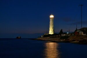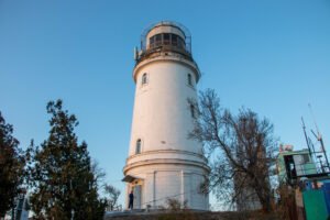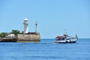 Портовый маяк – яркая достопримечательность курортной столицы Крыма. Фонарь на вершине белой башни с наступлением сумерек загорается манящим рубиновым цветом.