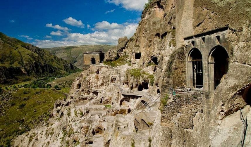 Высокий берег реки Куры венчает гора, сложенная осадочной породой – туфом. Мощная скала буквально источена рукотворными пещерами. Несколько сотен помещений поднимаются на высоту 8-этажного дома.