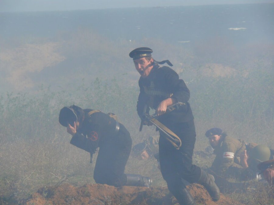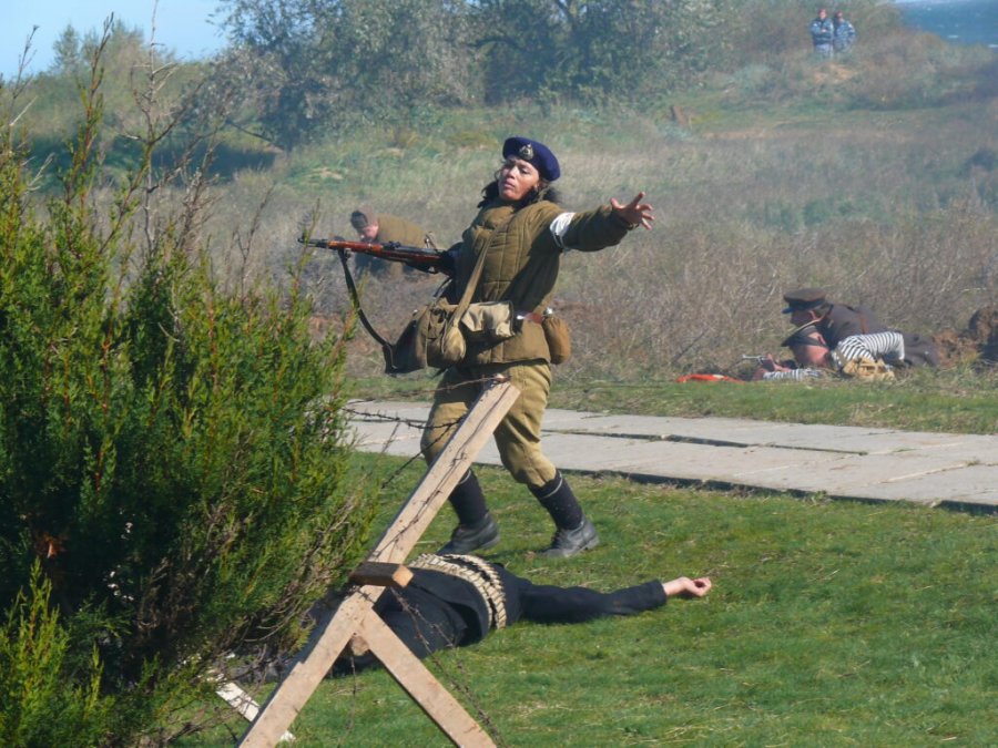 Вот что говорит участник событий, военный корреспондент Сергей Борзенко: «Бойцы падали на песок перед колючей проволокой. В заграждении сделали проход. Теперь надо кому-то подняться первым, увлечь всех за собой. Это трудно, ибо, лёжа перед проволокой, можно на пять минут прожить дольше. Вдруг я увидел девушку. Она встала во весь рост и, закружившись в каком-то дивном танце, рванулась вперёд. Какой моряк мог допустить, чтобы девушка была впереди него в атаке? Будто ветер поднял людей!»