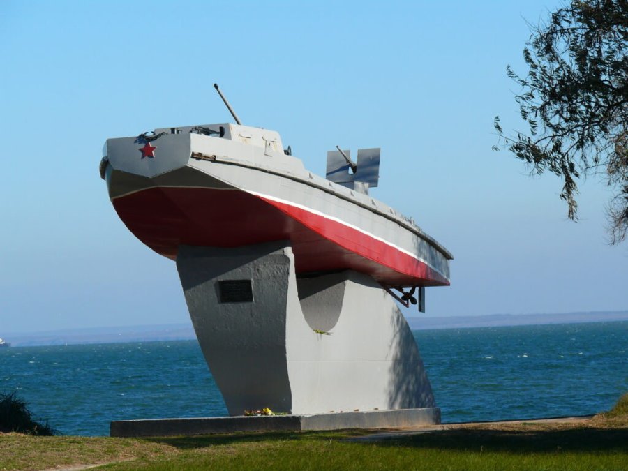 Недалеко от Керчи привольно раскинулся курортный посёлок Героевское: уютные коттеджи, ласковое море, просторный пляж. А на постаменте – ощетинившийся пулемётами десантный мотобот, на возвышенности – громада памятника Героям Эльтигена. Подобно скале, выступают из земли отлитые в бетоне барельефы воинов, а их осеняет монумент. Любуясь его необычной формой, видишь и взлетающую ракету – сигнал к штурму, и поднятую руку командира, указывающего направление броска, и осколок смертоносного металла, разрывающего огненную землю, и горькую чашу страданий, которую пришлось испить защитникам плацдарма, и дикий тюльпан, что каждую весну расцвечивает степь алыми огоньками. Но более всего он похож на наполненный ветром парус надежды.