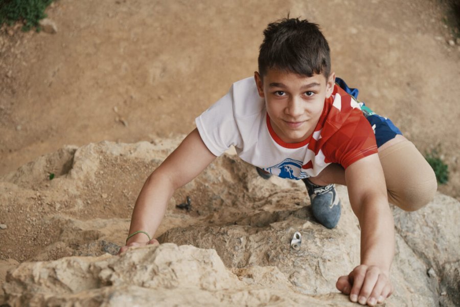 Скалолазание один из самых энергичных видов спорта. Все тренировки разнообразные: новые упражнения, развитие концентрации, ходьба по тросу, метание мячей… Также занимаемся другими видами спорта в качестве дополнения к основным тренировкам.