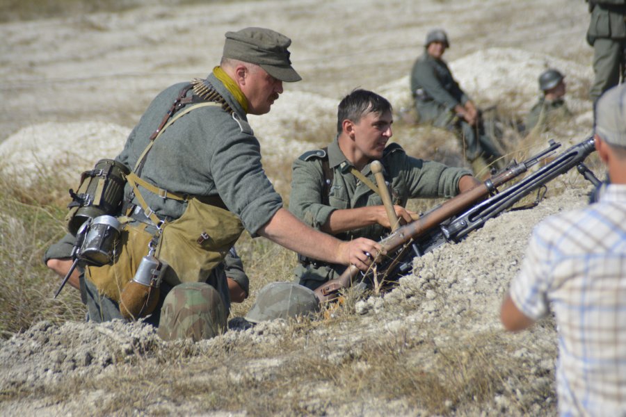 Здесь легко встретить солдата вермахта, любезничающего с прекрасной дочерью Генуи, душмана, помогающего бойцу Красной армии тащить пушку-«сорокапятку» на бой за легендарный Севастополь, немецкую штабистку, дегустирующую отжатый по старинным технологиям, проще говоря, ногами, виноградный сок в компании древнего римлянина, скифа, играющего с юным древним греком. Их разделяют целые эпохи, тысячи километров или непримиримая вражда. Но в минувшие выходные уже в седьмой раз они оказались все вместе в одном месте – на военно-историческом фестивале на Федюхиных высотах.