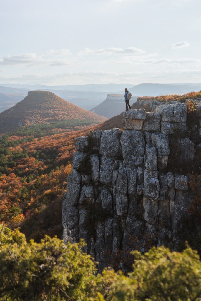 И всё же у меня есть свои любимые места, в которые я с удовольствием выбираюсь на осенние фотосессии. Например, скала Крокодил в Бахчисарайском районе: в лучах закатного солнца с неё открывается умопомрачительный вид, при этом место не настолько знаменитое, как некоторые смотровые площадки, и довольно уединённое.