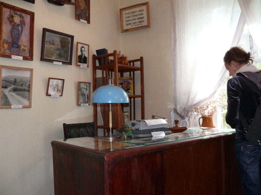 Крохотный домик отличается от соседних скромными, но выразительными памятными знаками. На входящего глядит бронзовое задумчивое мужское