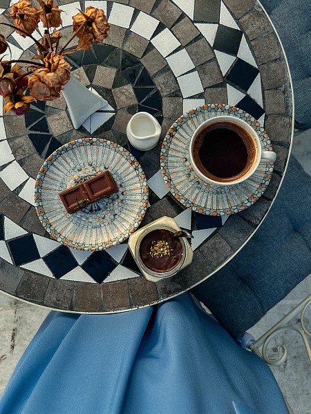 Дополняют кофейную карту десерты из натуральных продуктов. Особого внимания заслуживают кюнефе – традиционное восточное лакомство и нашумевший дубайский шоколад, который также изготавливают прямо здесь.