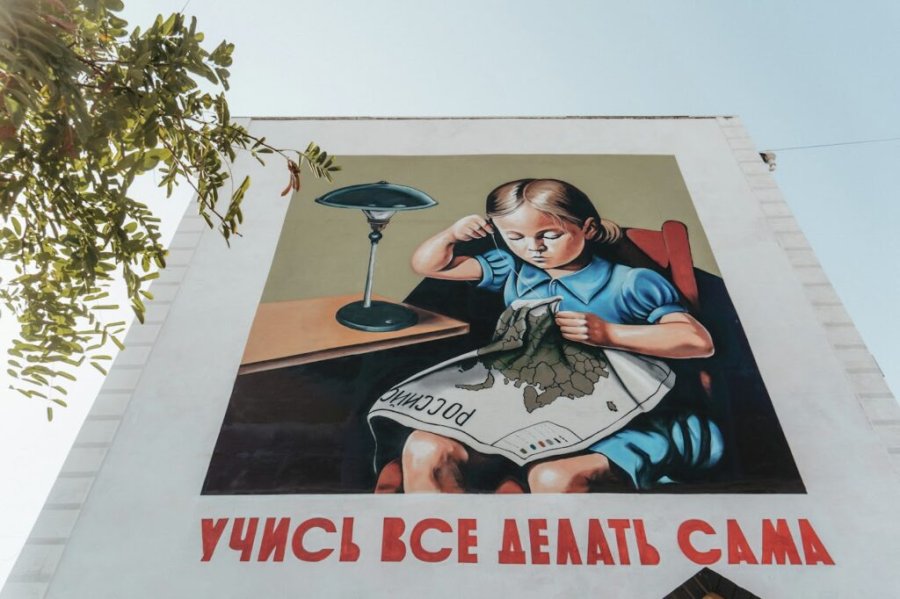Фасад дома №61 на улице Ленина украсил коллаж «Клюква в квадрате» с элементами, отражающими русскую культуру и узнаваемые образы Крымского полуострова. Громкие успехи, достижения и «пасхалки», понятные каждому, – всё это объединила графическая композиция, которая напоминает нам о масштабе и величии культурного наследия нашей страны, её многогранности и эклектичности.