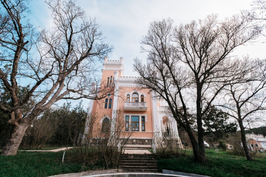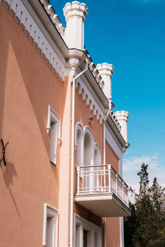 В силуэте здания выделяется увенчанная зубцами трёхэтажная башня. Она вызывает ассоциации со средневековыми рыцарскими замками. А может, напоминала старому воину службу в Чечне и Дагестане. Только в Салгирской долине башня выполняла сугубо мирную функцию. С верхней площадки открывался вид на окрестности, а впоследствии тут установили телескоп и метеорологические приборы.