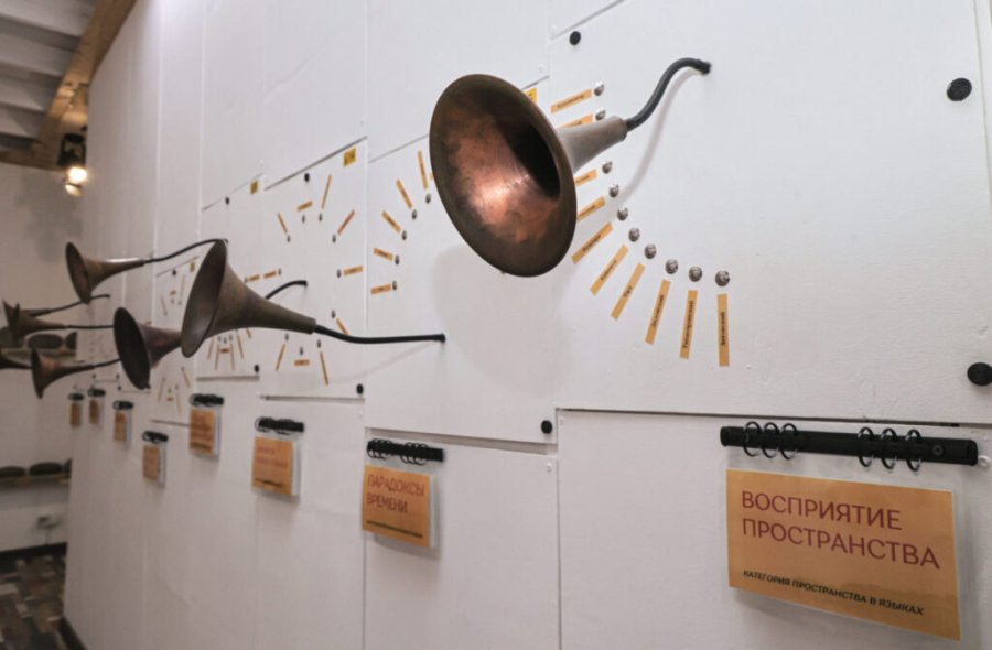 – С просветительской точки зрения, самый значимый стенд посвящён языковому многообразию, – отмечает Евгений. – В нём 16 разделов, и каждый можно прослушать. Это языки-гиганты, языки свиста, возрождённые, сакральные, исчезающие, древние, славянские и другие. Кроме этого, среди артефактов есть уникальные книги на пальмовых листьях, нефритовых табличках, Фестский диск, тибетские молитвенные барабаны. Одна из разработок музея – интерактивная карта всех мировых языков. Нажав на точку на карте, можно получить информацию о числе носителей языка и его статусе.