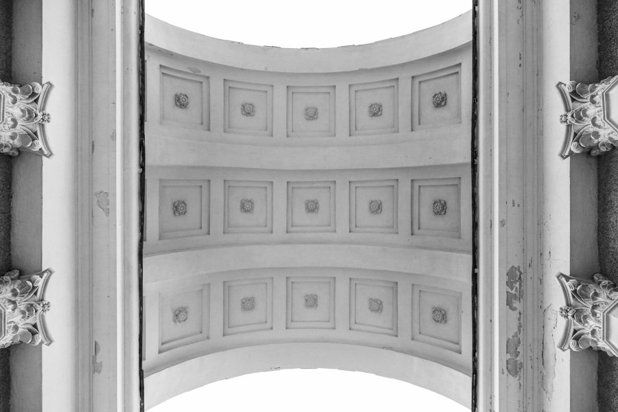 Дорога ныряет в лес и превращается в просторную тенистую аллею. Вскоре она приводит к высокой арке. Несколько шагов – и взору открывается величественный архитектурный ансамбль в античном стиле. Кажется, через мгновение в «крытой колоннаде между двумя крыльями дворца Ирода Великого» покажется прокуратор Иудеи Понтий Пилат «в белом плаще с кровавым подбоем» или на аллею выйдут Платон и Аристотель, неспешно беседующие на философские темы.