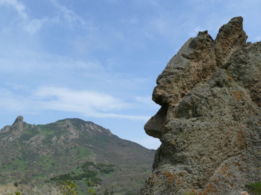 Сходные черты – прямой нос, нависшие над глазами надбровные дуги – свидетельствуют о родственных связях каменных братьев, поставленных в разных концах земли оберегать частицы первозданного мира: памятник национального наследия Перу и Карадагский природный заповедник Крыма.