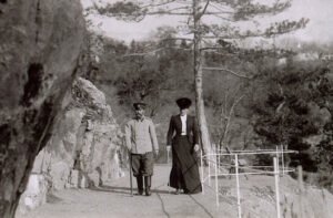 История сохранила фотографию, на которой запечатлена прогулка Ники и Аликс по «Горизонтальной дорожке». Судьбе было угодно, чтобы на скале, изображённой на снимке, впоследствии выросли два деревца. Яркие представители южнобережной флоры – фисташка и можжевельник – накрепко переплелись корнями, как будто не желая расставаться. Глядя на маленькое чудо природы, вспоминаешь замечательные строки из «Баллады о прокуренном вагоне». Не этот ли вагон в 1918 году увозил в небытие – нет, в вечность! – царскую семью?