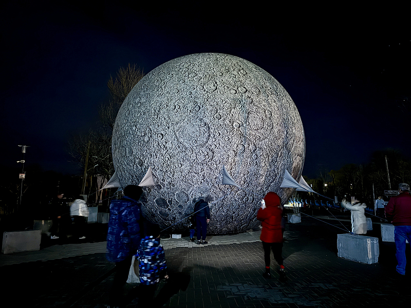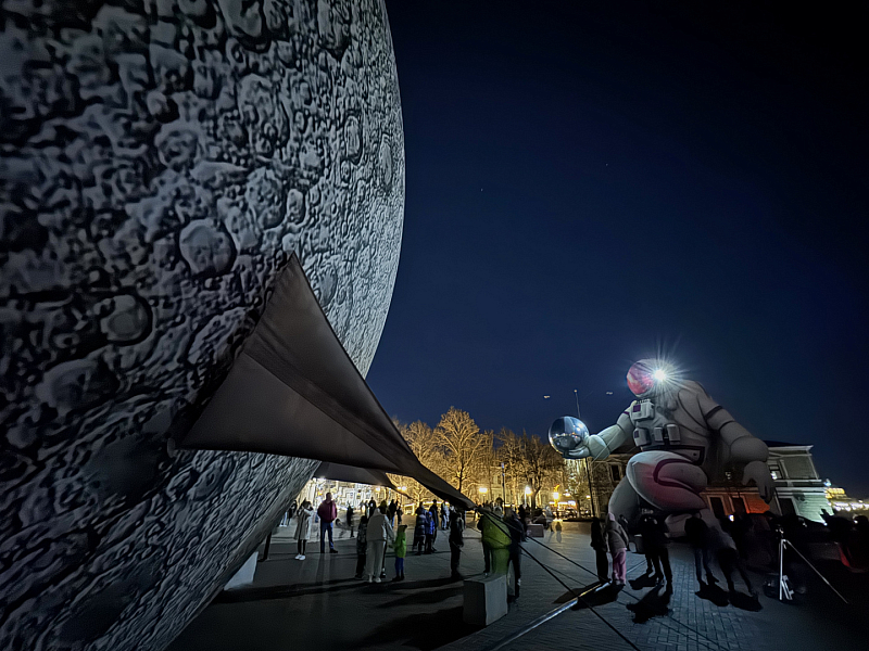 В вечернее время «луна» и «космонавт» подсвечиваются, что делает их ещё эффектнее.