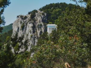 Ещё одно имя горы – Крестовая: на обрыве возвышается крест. Он появился тут в 1837 году, когда царица Александра получила от супруга Николая I в подарок имение «Ореанда». В этой пустынной местности планировалось возвести дворец, разбить парк, где первая леди страны поправляла бы здоровье, подточенное сырым санкт-петербургским климатом.