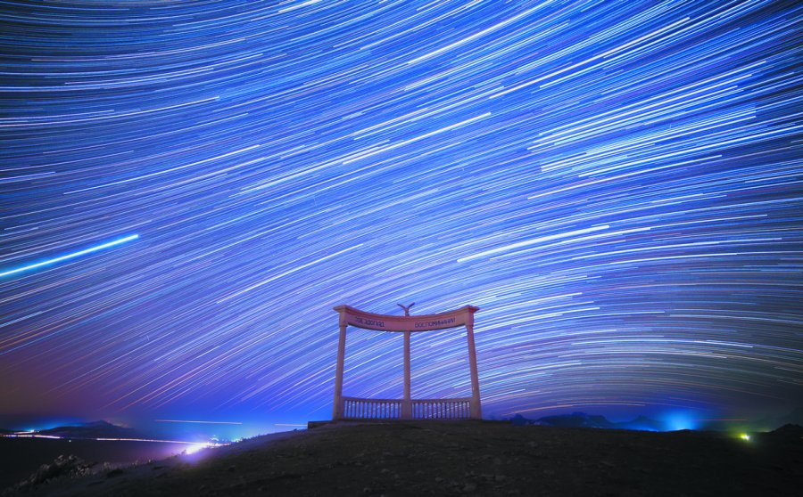 «Звездопад воспоминаний» находится на горе Коклюк, что по пути в Коктебель. Это ротонда из трех колонн, на основании изображена роза ветров, а на своде запечатлено название достопримечательности. Это сооружение является символом воздушной стихии, которая правит в этом месте. Все дело в необычном природном явлении – легкие предметы, подброшенные в воздух, здесь не падают на землю, а взлетают вверх. Стоит отметить, что таких мест во всем мире только два: первое – это «Звездопад…», а второе — Харрис-Хилл в Америке. Также это любимая площадка тех, кто занимается дельтапланеризмом и планерами.