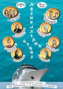 МУЗЫКАЛЬНЫЙ КРУИЗ Солисты Крымской филармонии Справки по телефоны +7 978 752 03 52 Билеты 250 рублей