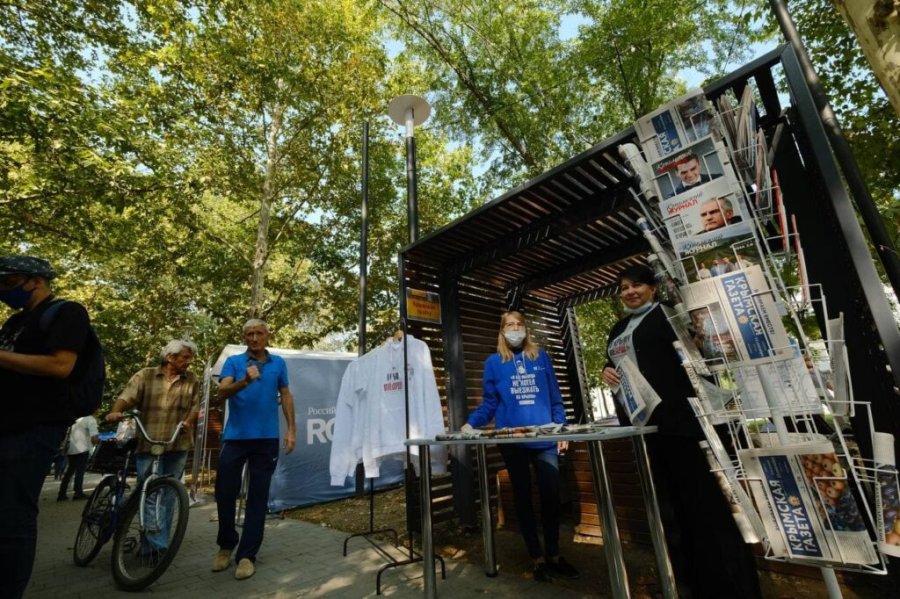 На «Аллее печатных СМИ» представлены «Крымский журнал» и «Крымская газета». Сотрудники редакции презентуют издания и рассказывают, как оформить на них подписку, в том числе онлайн. Кроме того, на стенде можно купить фирменные футболки и худи.
