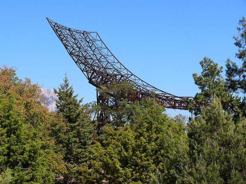Командно-измерительный пункт развернули на горе Кошка возле Симеиза. Склон, обращённый к морю, идеально подходил для решения поставленной задачи: угол наклона к горизонту близок к нулю, и эта природная особенность обеспечивала оптимальные условия для отправки и приёма радиосигналов. Поскольку стационарный центр дальней связи уже проектировался в степях под Евпаторией, долговременные постройки на «горке» не возводили. Единственным капитальным сооружением стала антенна.