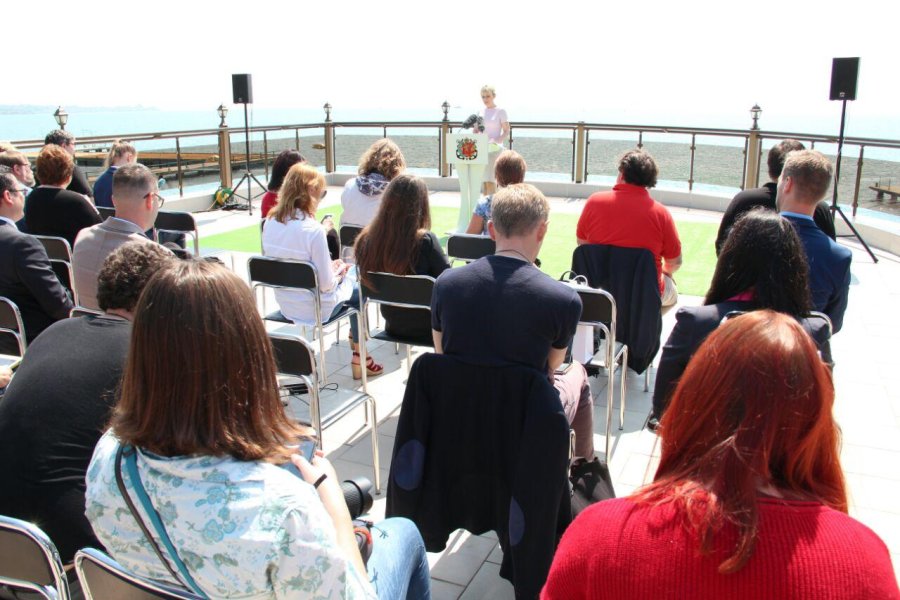 Сегодня в Керчи состоялся брифинг официального представителя МИД РФ Марии Захаровой, в рамках которого ей подарили спецвыпуск «Крымского журнала» ко Дню Победы.