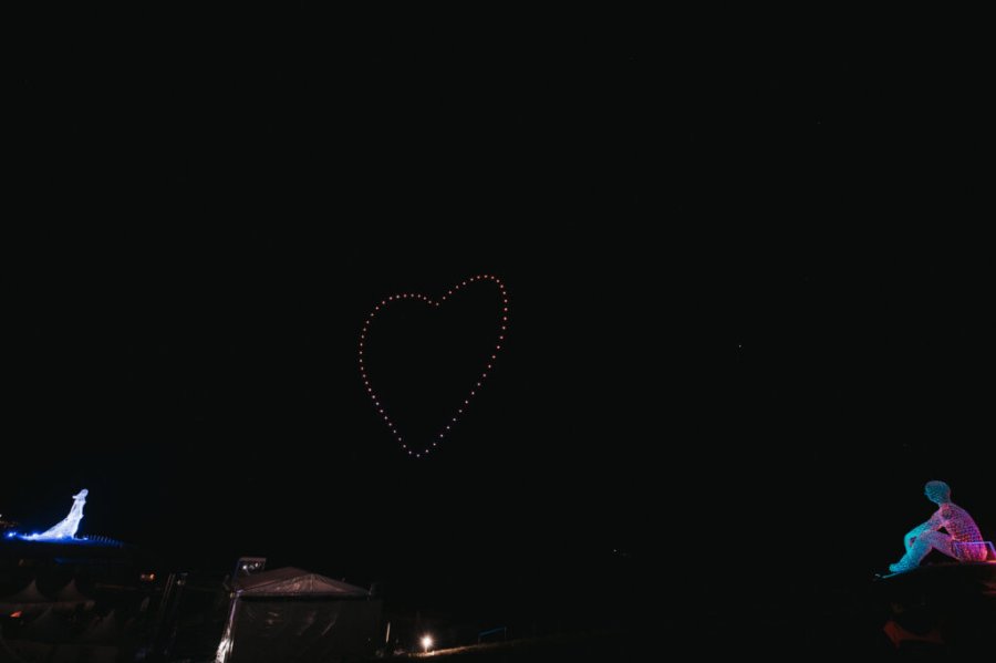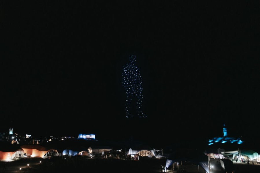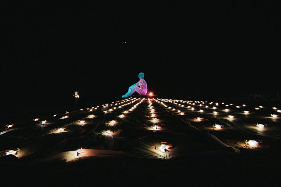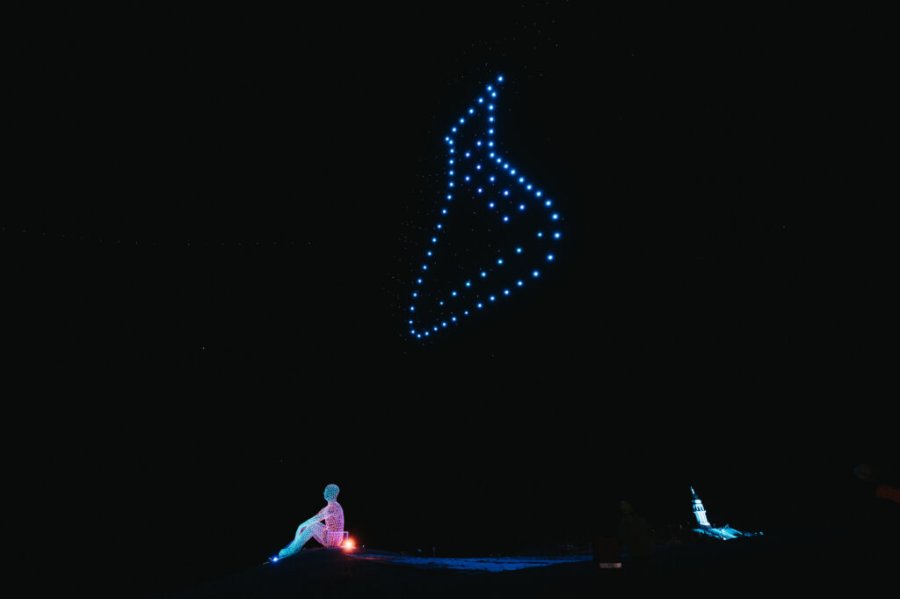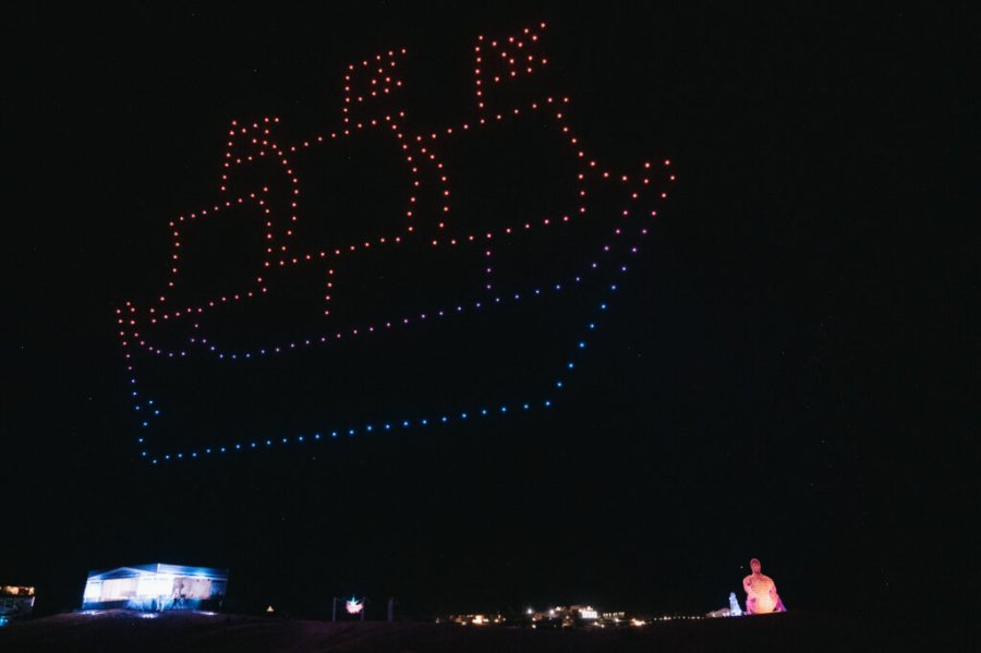 В ночь на 10 сентября парусник «Херсонес», арт-объекты «Человек, смотрящий в море» и «Ассоль» стали декорациями для масштабного шоу дронов под аккомпанемент симфонического оркестра и DJ-резидентов арт-кластера «Таврида». В небо над костровой площадкой поднялся рой из 300 беспилотных аппаратов. Дроны сформировали уникальные воздушные фигуры, разработанные дизайнерами специально для фестиваля.