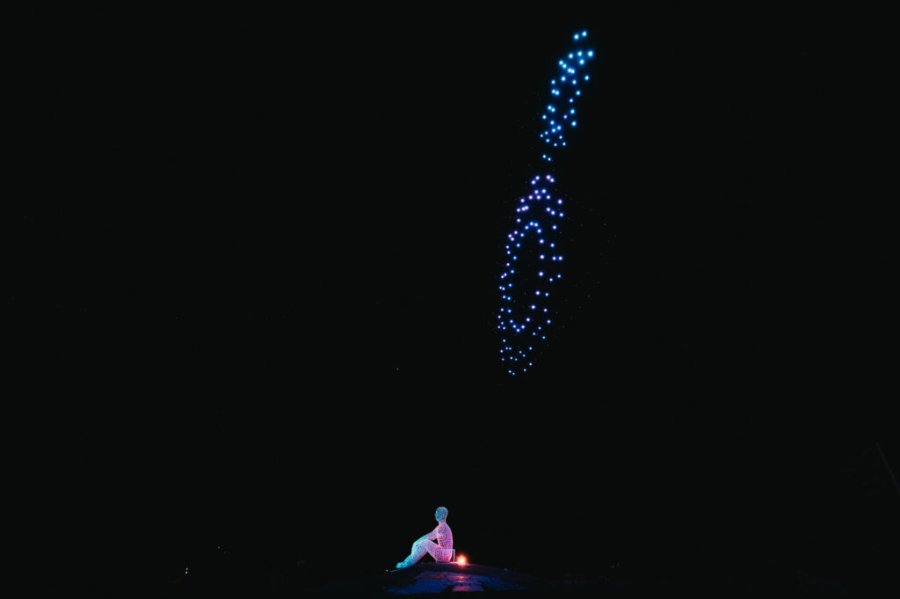 Рой из 300 дронов рассказал в ночном небе над «Тавридой.АРТ» в бухте Капсель в Крыму историю о рождении человека, выборе пути, любви и будущем. На «Тавриде» новый вид перформанса назвали небесным спектаклем, сообщили в пресс-службе арт-кластера.