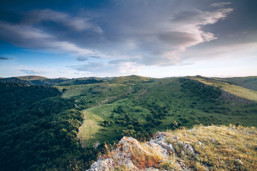 Древнее горное плато Караби (Белогорский район) удалено от населённых пунктов. Здесь можно побыть наедине с древней природой Крыма и хорошо отдохнуть в любое время года… Весной на контрасте серых карстовых выходов и насыщенно-голубого неба наслаждаться цветением ярко-алых и нежно-розовых краснокнижных крымских пионов. Летом вдыхать целебный воздух, напитанный ароматами чабреца и лимонника, а тёплыми августовскими ночами разглядывать мириады звёзд, которые наперегонки спешат исполнить заветные желания. Осенью медитировать на фоне открывающейся панорамы на холмы и горы, поросшие пёстрым лесом, и море, в которое опустил голову медведь – Аю-Даг.