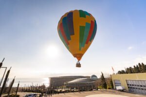 воздушный шар полуострова поднял гостей на высоту 50 метров, откуда открываются виды на море, горы и на всю территорию комплекса.