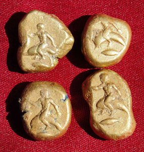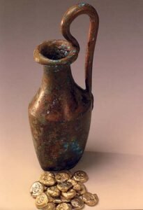 Хотите – верьте, хотите – нет, но спустя ровно 19 лет после открытия сосуда с «кизикинами» в Мирмекии опять нашли клад! На этот раз виновницей торжества стала девушка-волонтёр. Лёгким движением руки она открыла миру симпатичный глиняный горшок с 30 золотыми монетами периода царствования Александра Македонского.