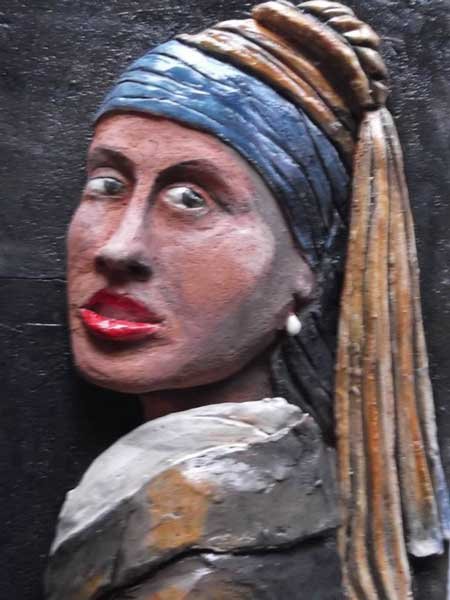 Глина — совершенно волшебный материал. Я использую глину с острова Искья, очищенную от камешков, листьев и грязи. Она красиво называется «терра» и происходит из земель региона Кампания. Иногда работаю с африканской глиной красного цвета. Пишу только минеральными красками. Все мои работы экологичны. В двух словах: техника заключается в трансформации живописи по холсту в полихромную трёхмерную керамику. Придерживаюсь современной школы искусства, часто создавая барельефные реплики известных картин прошлого. В работе использую инновационные материалы и особую глазурь, люблю технические и цветовые эксперименты.