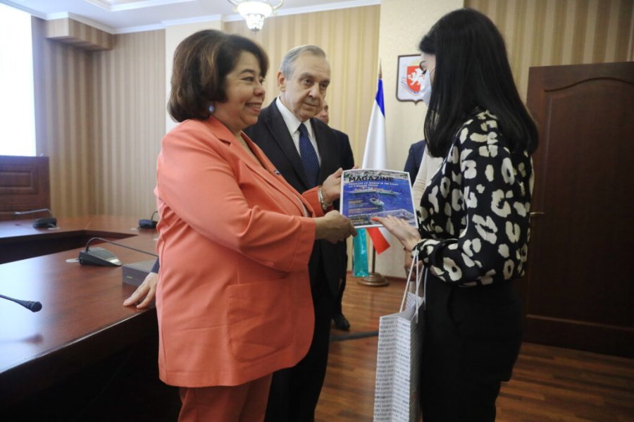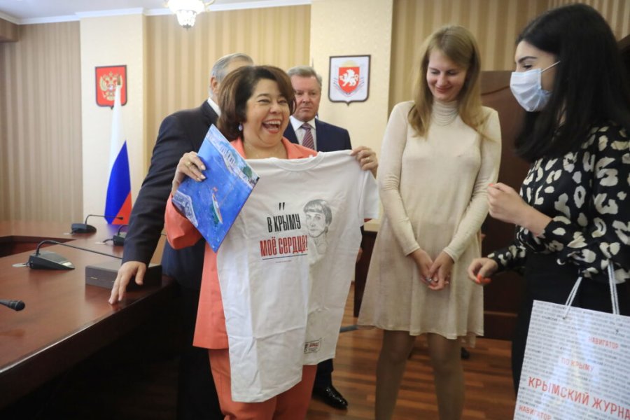 И госпожа Торрес не осталась без подарков: шеф-редактор «Крымского журнала» Маргарита Аванесова вручила послу выпуск на английском языке и фирменную футболку с логотипом «КЖ».