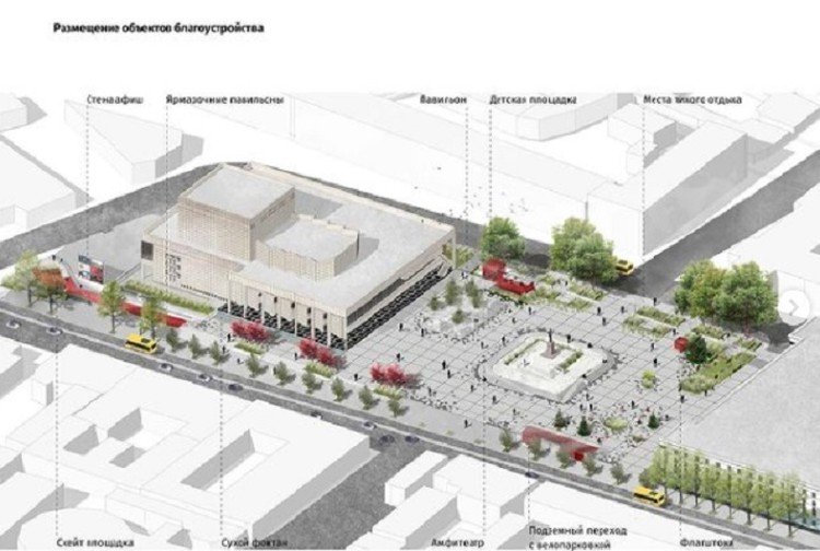 “We offer to form a dry fountain along the Northern facade of the theatre. It will provide an additional opportunity to get freshness in a hot day. A safe area for skaters will emerge at the ground from Kirov Prospect. It will allow not only to bring variety into the unused city square, but also reconsider a space for practice sports among young people”, — Obodovskiy explains.