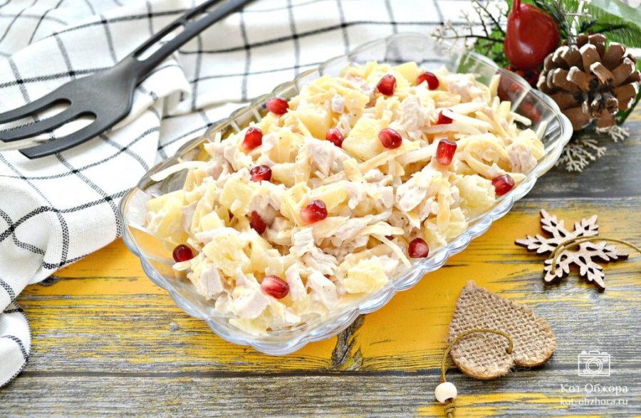 Полезная альтернатива: салат с курицей, ананасами и йогуртово-чесночным соусом