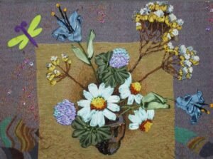 На картинах изображены маки, ромашки, подсолнухи, дельфиниумы, тюльпаны, розы, пионы, ландыши и другие цветы, которые вдохновляли мастериц в творческом процессе.