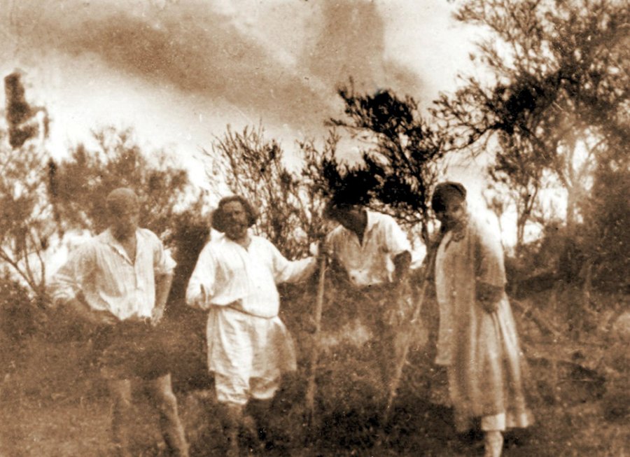 Волошин с гостями своего коктебельского дома. Крайний слева — Михаил Булгоков. 1925 г.