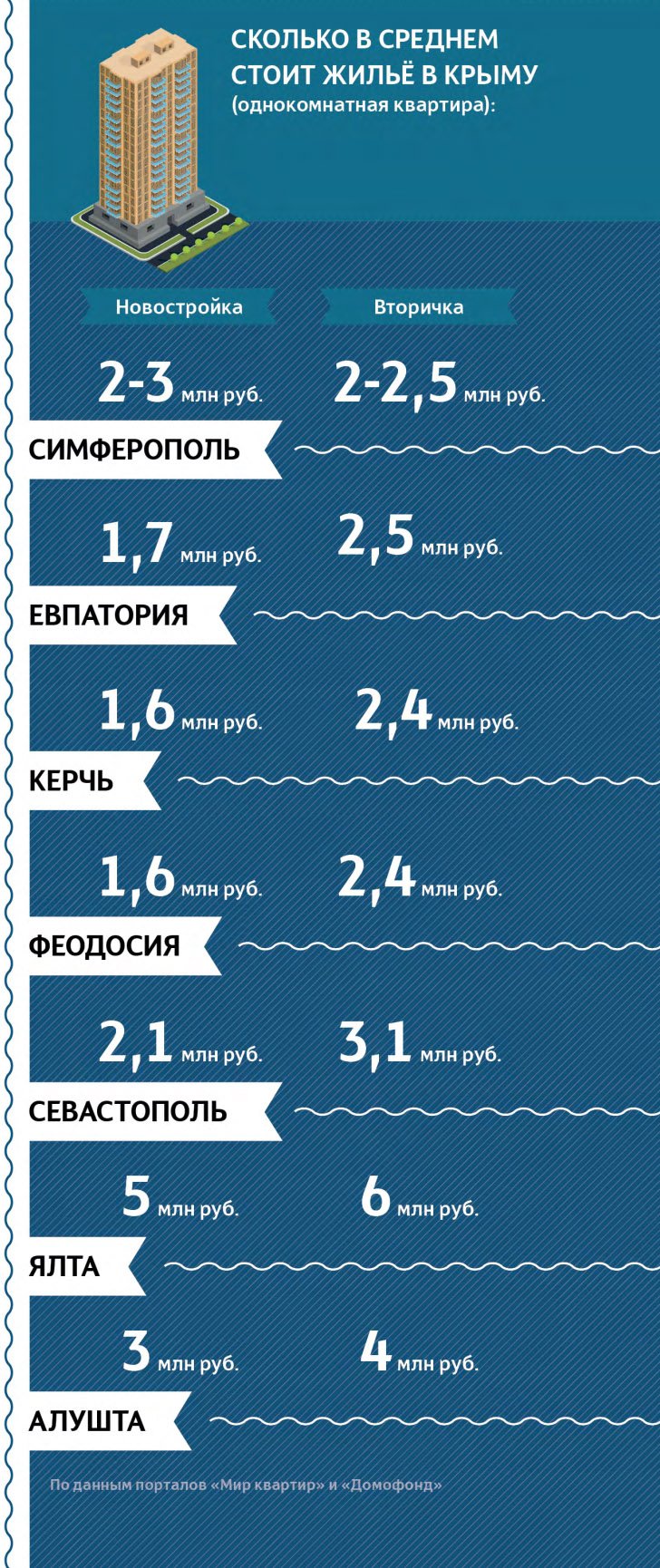 — Стоимость квартир резко поднялась после воссоединения полуострова с Россией. Но ожидания собственников, что россияне бросятся скупать крымское жильё, несмотря на сложности с законодательной базой, низкий уровень сервиса и нехватку инфраструктурных объектов, не оправдались. Сегодня основные надежды связаны с открытием в 2018 году Крымского моста, — рассказал генеральный директор портала по продаже недвижимости Павел Луценко.