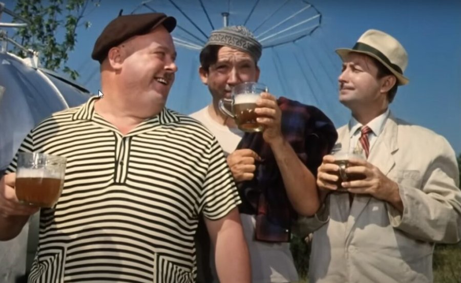 Эпохальную сентенцию озвучивают, смакуя пиво, Трус, Балбес и Бывалый, персонажи Георгия Вицина, Юрия Никулина и Евгения Моргунова – герои искромётной комедии «Кавказская пленница». Фильм насыщен хорошо узнаваемыми реалиями советской жизни 1960-х годов, создающими впечатление радостного бытия.