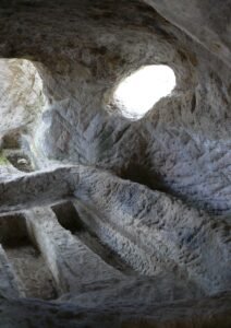 Это выражение иллюстрирует средневековый обряд захоронения монахов в пещерных монастырях Тавриды. Посетители древних памятников, расположенных в Бахчисарайском районе, обращают внимание на высеченные в скале углубления по размеру тела взрослого человека. Это – гробницы.