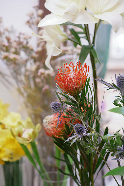 Находясь под влиянием западной и корейской флористики с её легкими воздушными композициями, российская сохраняет свою индивидуальность, тяготея к пышным крупным формам.