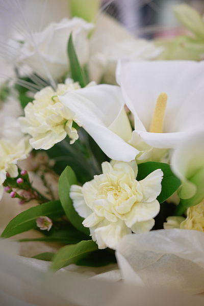 Беспроигрышный вариант – красные или бордовые розы в сочетании с зеленью. Также эффектно смотрятся композиции из бордовых или зелёных орхидей-цимбидиумов, хризантем винных и зелёных оттенков с добавлением роз и зелени. В белой гамме популярны букеты из хризантем и роз.